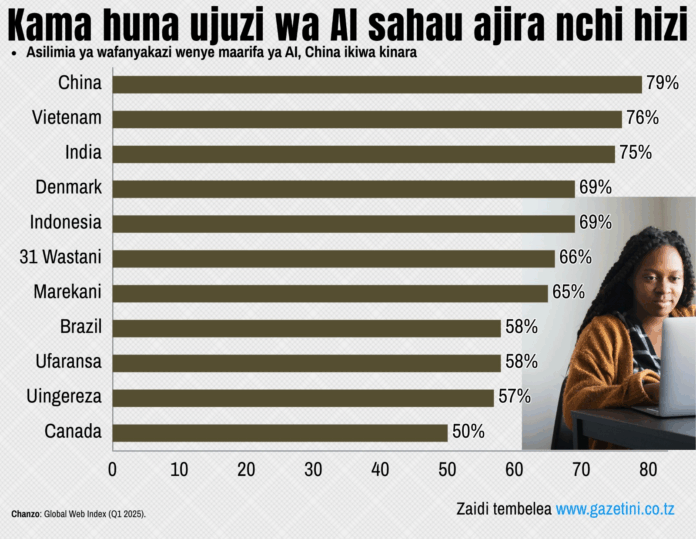 Nchi nyingine zilizoonyesha viwango tofauti vya uelewa na matumizi ya AI ni Brazil na Ufaransa (zote asilimia 58), Uingereza (asilimia 57), huku Canada ikishika nafasi ya mwisho kwa asilimia 50.