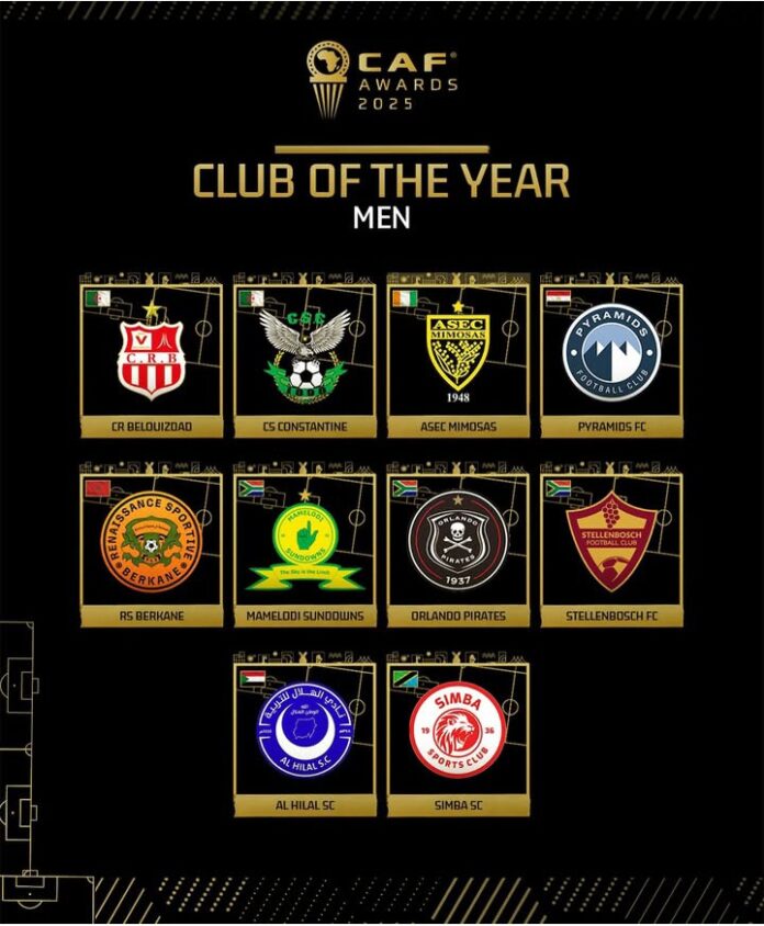 Klabu ya Simba imeteuliwa na Shirikisho la Soka Afrika (CAF), kuwania tuzo ya Klabu Bora Afrika (Club of the Year) kwa mwaka wa mashindano wa 2025.