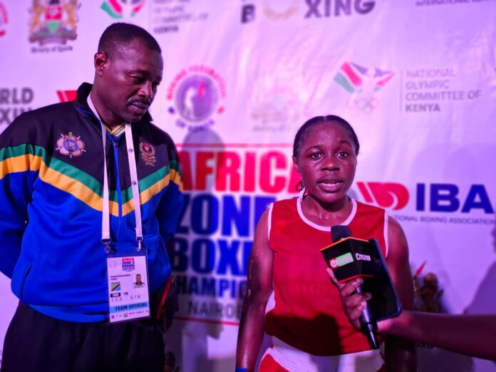 Bondia Mtanzania Zulfa Macho amemchapa kwa pointi Bisambu Deborah wa DR Congo katika pambano la nusu fainali ya mashindano ya ngumi ya Kanda ya Tatu Afrika, yanayoendelea Nairobi, Kenya.
