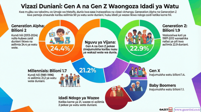 Idadi hiyo ni sawa na asilimia 22.9 ya watu duniani kote, hivyo ‘Gen Z’ wanashika nafasi ya pili kwa wingi, huku Gen A wakiendelea kuongoza.