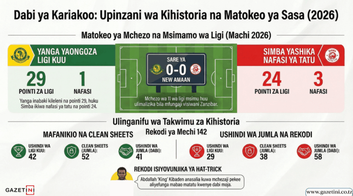 Katika mechi hizo 142, Yanga na Simba, klabu zenye upinzani mkubwa zaidi katika soka la Tanzania, zilikuwa zimetoa sare 43.
