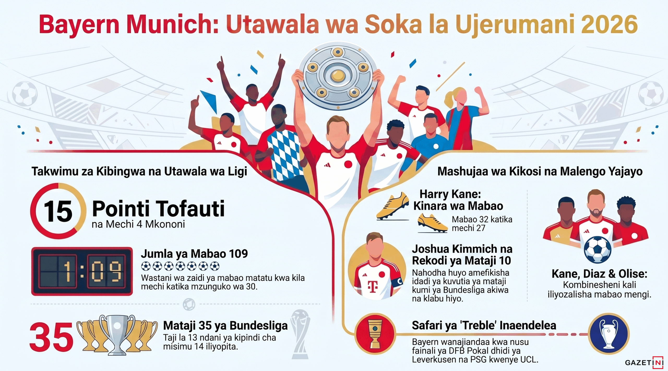 Bayern wamebaki na taji walilobeba msimu uliopita baada ya kuifunga Stuttgart mabao 4-2 katika mechi ya Aprili 19, 2026.