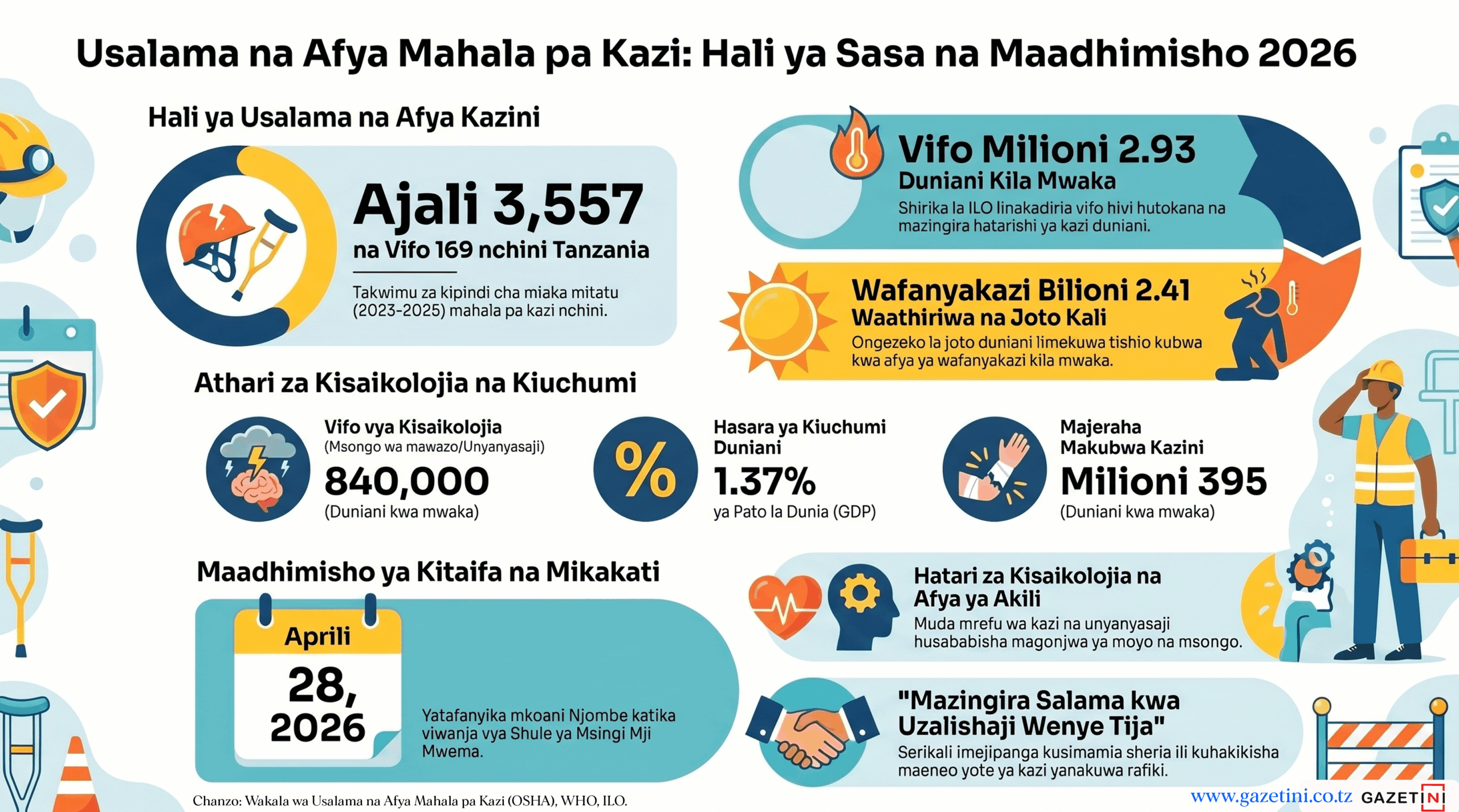 Takwimu hizo zimetolewa wakati Tanzania ikijiandaa kuungana na mataifa mengine duniani kuadhimisha Siku ya Usalama na Afya Mahala pa Kazi, ambayo huadhimishwa kila mwaka Aprili 28 na mwaka huu kitaifa itafanyika mkoani Njombe.