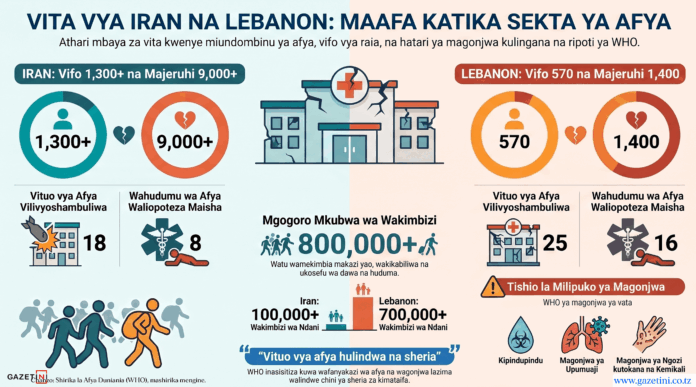 Mathalan, WHO inaeleza kuwa vituo vya afya 18 nchini Iran vimeshambuliwa kwa mabomu tangu Februari 28, 2026, na kusababisha vifo nane vya wahudumu wa afya.